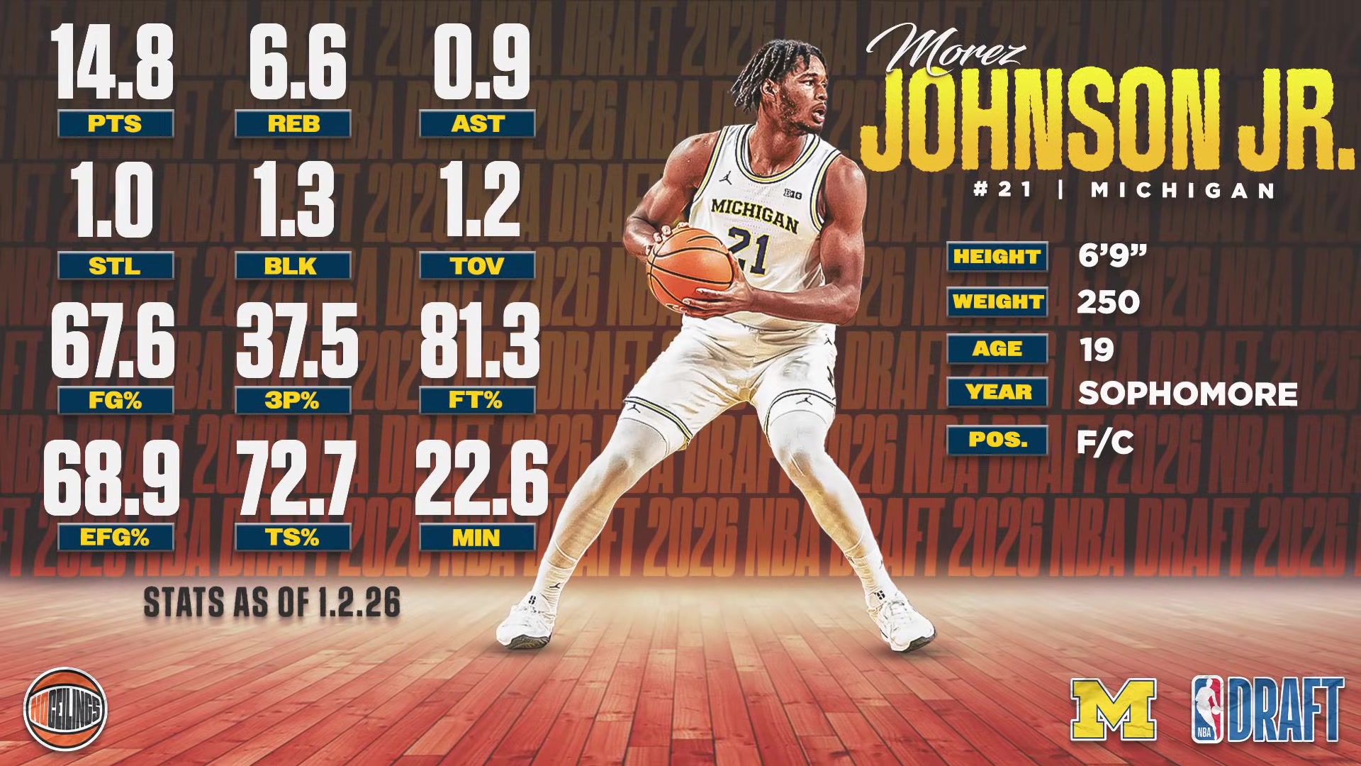 模板斯图尔特!密歇根强硬内线小莫雷兹·约翰逊大学集锦~