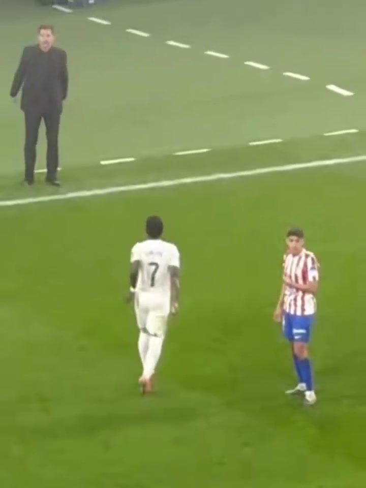 你俩杠上了😂!维尼修斯下场时再次西蒙尼发生争吵,西蒙尼投诉