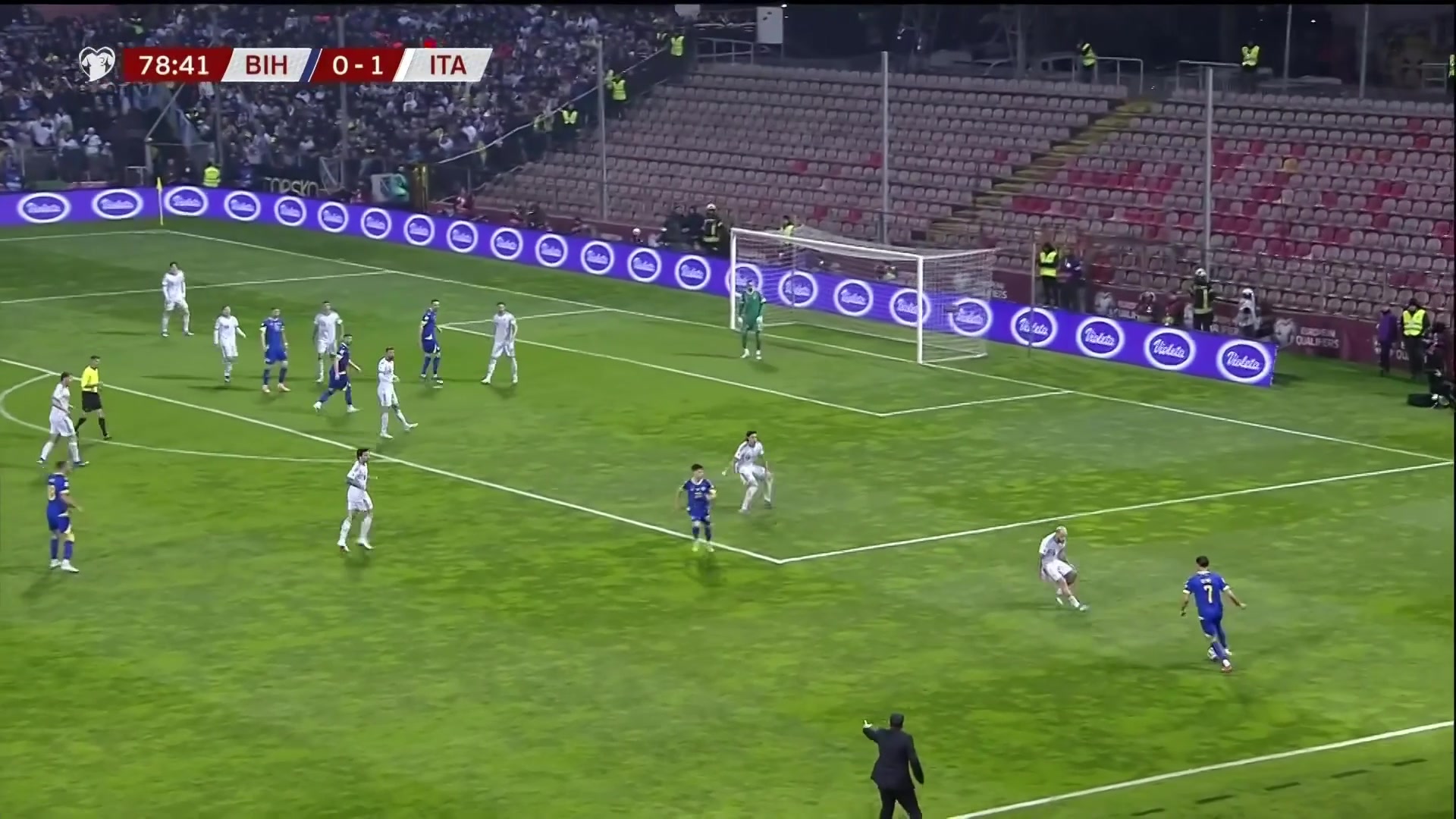 要加时了?波黑第79分钟混战破门,十人意大利遭扳平!